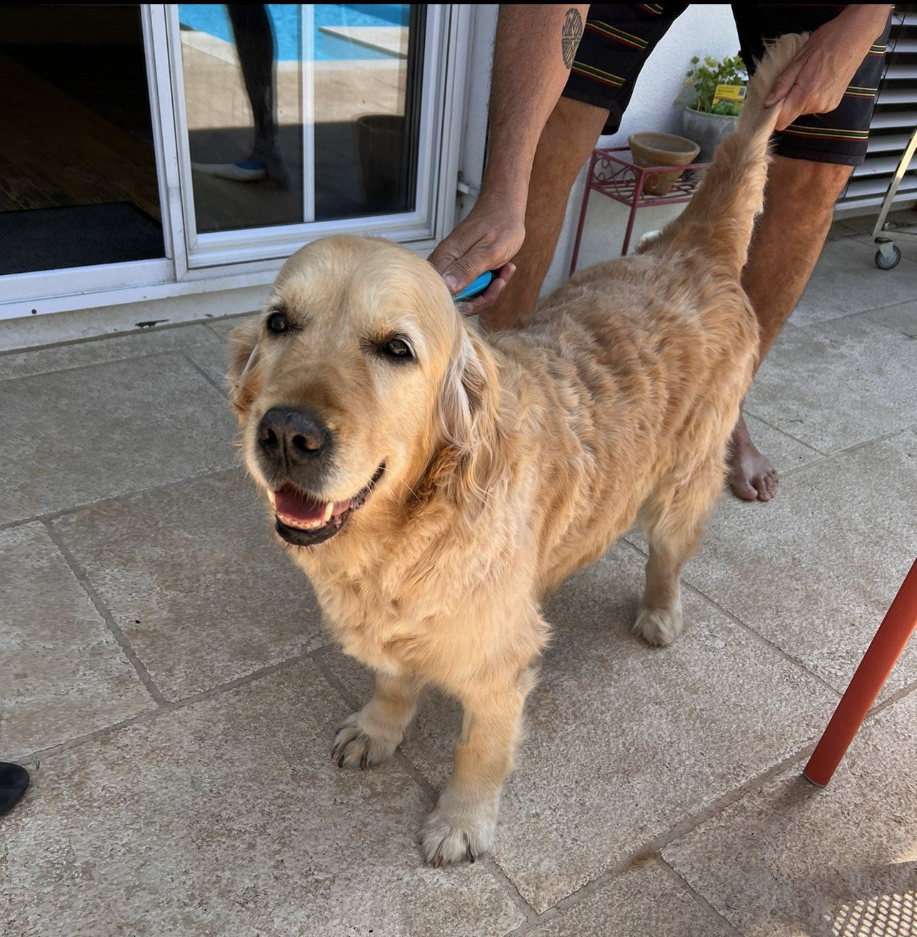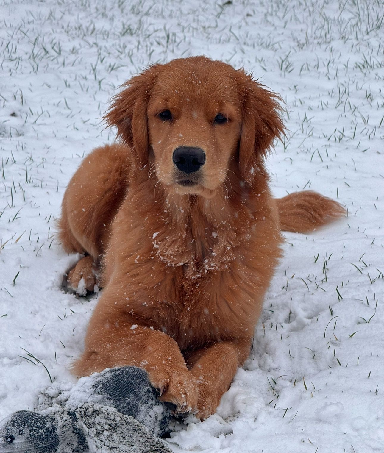 Miles ist leider nicht für die Zucht geeignet. Seine Gesundheitsergebnisse erlauben es uns nicht ihn als Deckrüden einzusetzen. Wir waren zunächst sehr traurig, wäre doch die Verpaarung Chevy und Miles unser großer Traum gewesen. Seine auffällige Fellfarbe und sein unglaublicher Charme verzaubern jedem der ihm begegnet. Auch sein Temparament lässt nichts zu wünschen übrig. Er ist für jeden Streich zu haben und führt das Rudel auch diesbezüglich an. Miles ist aber auch total begeistert von jeglicher Retrieverarbeit. Dummy-Training ist seine große Leidenschaft.